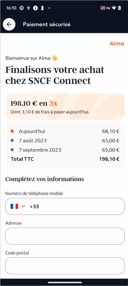 Sous réserve d’acceptation de l’offre de paiement échelonné par Alma – 839 100 575 RCS Nanterre.