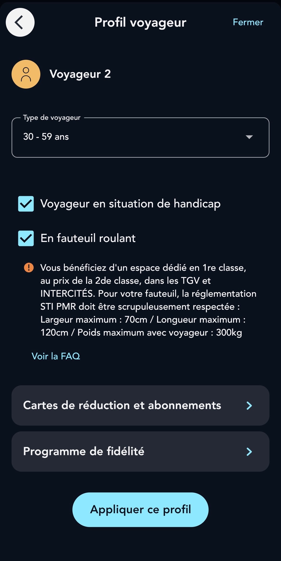 Cochez la case "Voyageur en situation de handicap"